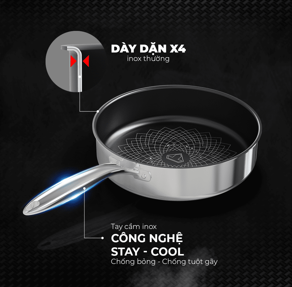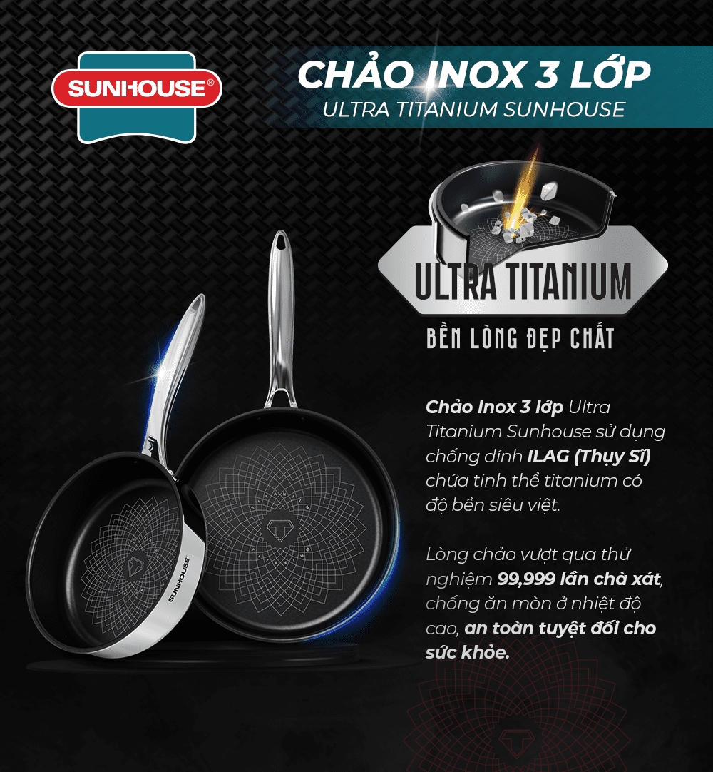 CHẢO INOX 3 LỚP ULTRA TITANIUM CHÍNH HÃNG SUNHOUSE STI22M