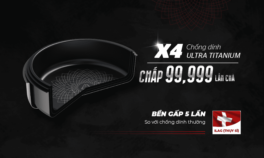 - Chống dính Ultra Titanium (ILAG Thụy Sĩ): bền gấp 5 lần, chấp 99.999 lần chà