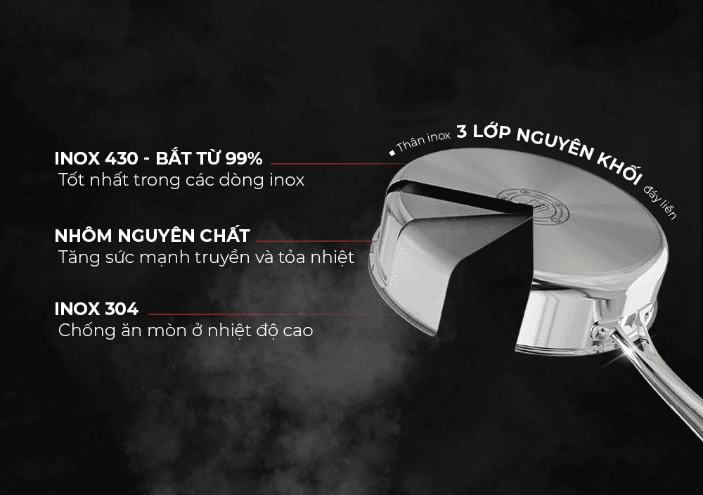 - Tay cầm inox công nghệ Stay-cool: chống bỏng, siêu bền chắc