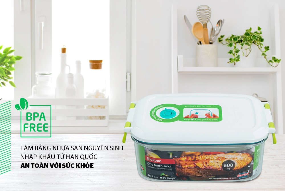 Trong đó, hộp bảo quản thực phẩm thông minh BioZone 600ml là dòng hộp nhựa an toàn phân khúc cao cấp được làm từ nguyên liệu nhựa nguyên sinh, an toàn với sức khỏe, đáp ứng nhu cầu bảo quản thực phẩm đa dạng tại gia đình.