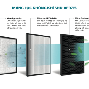 Màng lọc không khí CHÍNH HÃNG SUNHOUSE SHD-AP9715 sử dụng kết hợp giữa hệ thống màng lọc 3 lớp cao cấp gồm màng lọc sơ cấp, màng lọc carbon và màng lọc HEPA giúp tăng cường hiệu quả lọc. Nhờ thế mà đảm bảo lọc sạch được bụi bẩn, khói mùi, các tác nhân gây dị ứng và ngay cả bụi mịn PM2.5 trong nhà.