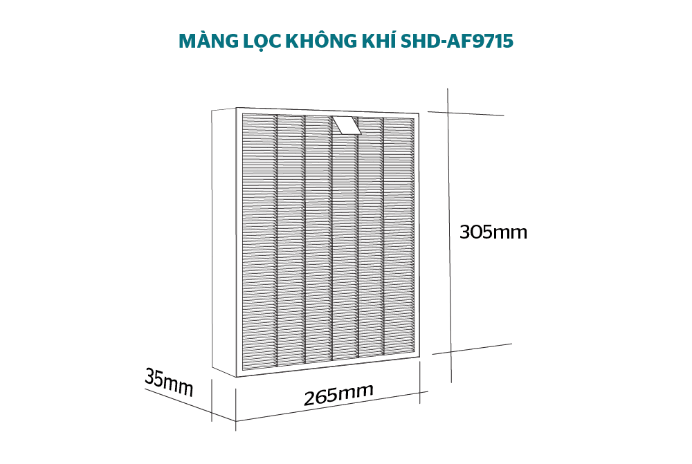 3 màng lọc với kích thước 265x35x305 mm, màng lọc không khí CHÍNH HÃNG SUNHOUSE SHD-AP9715 phù hợp với sản phẩm máy lọc không khí CHÍNH HÃNG SUNHOUSE SHD-15AP9715.