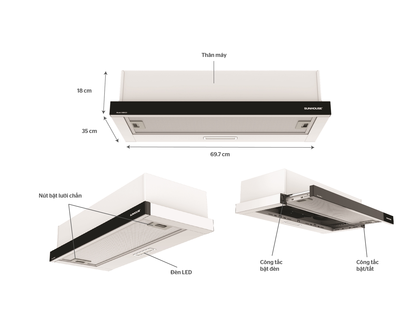 MÁY HÚT MÙI ÂM TỦ CHÍNH HÃNG SUNHOUSE SHB6123 2