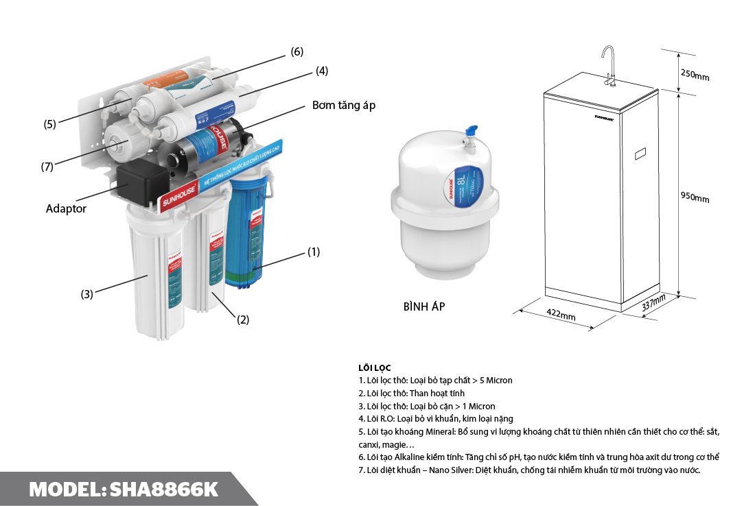 Máy lọc nước R.O 7 lõi CHÍNH HÃNG SUNHOUSE SHA8866K