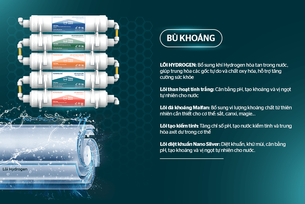 - Hệ thống lõi lọc 9 cấp, lọc sạch mọi tạp chất, tạo nguồn nước sạch tinh khiết