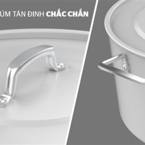 Toàn bộ sản phẩm được làm từ nhôm Anod, bao gồm cả vung nồi và quai núm, đem lại tổng thể hiện đại, trẻ trung.