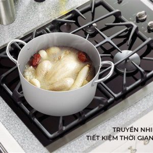 Toàn bộ sản phẩm được làm từ nhôm Anod, bao gồm cả vung nồi và quai núm, đem lại tổng thể hiện đại, trẻ trung.