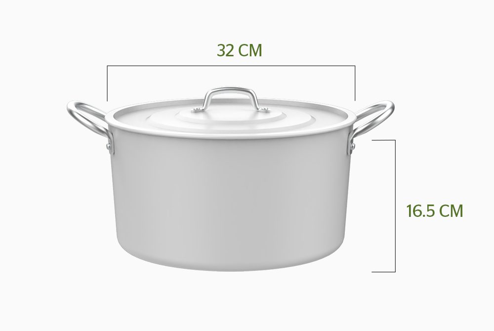 Đường kính nồi 32 cm, thích hợp để chế biến các món ăn như kho thịt, luộc trứng hoặc nấu canh cho 6-8 người.
