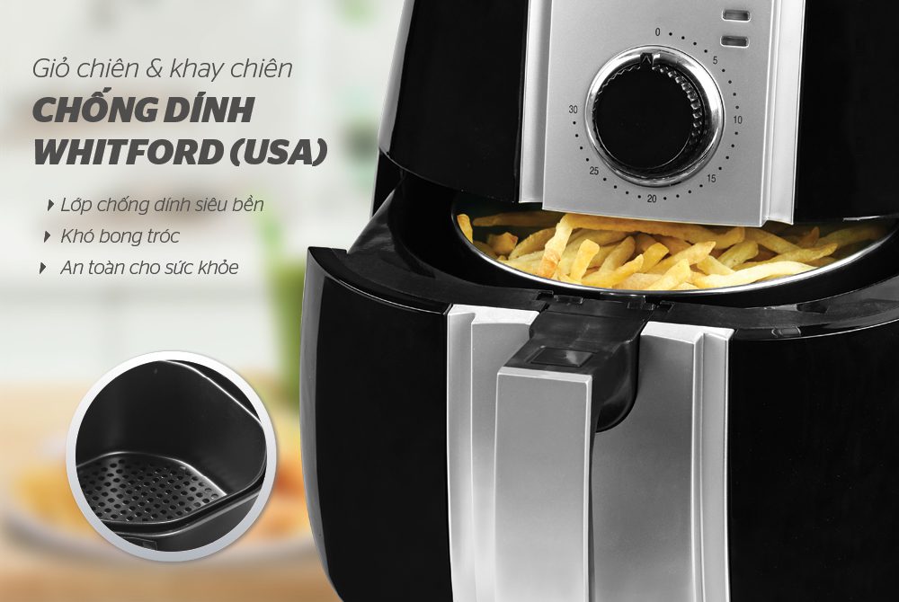 Quan trọng nhất đối với các thiết bị dùng để chiên rán là chất lượng lớp chống dính. Khay chiên và giỏ chiên của nồi chiên không dầu 3L CHÍNH HÃNG SUNHOUSE SHD4025B đều được phủ chống dính Whitfrod (USA) siêu bền, khó bong tróc và nhất là không thôi nhiễm ra thức ăn, rất an toàn với sức khỏe.