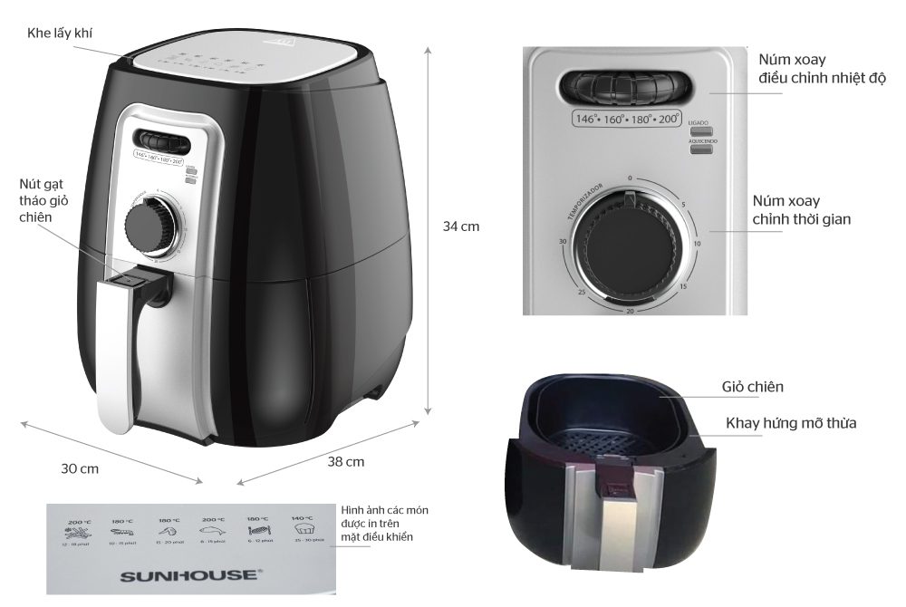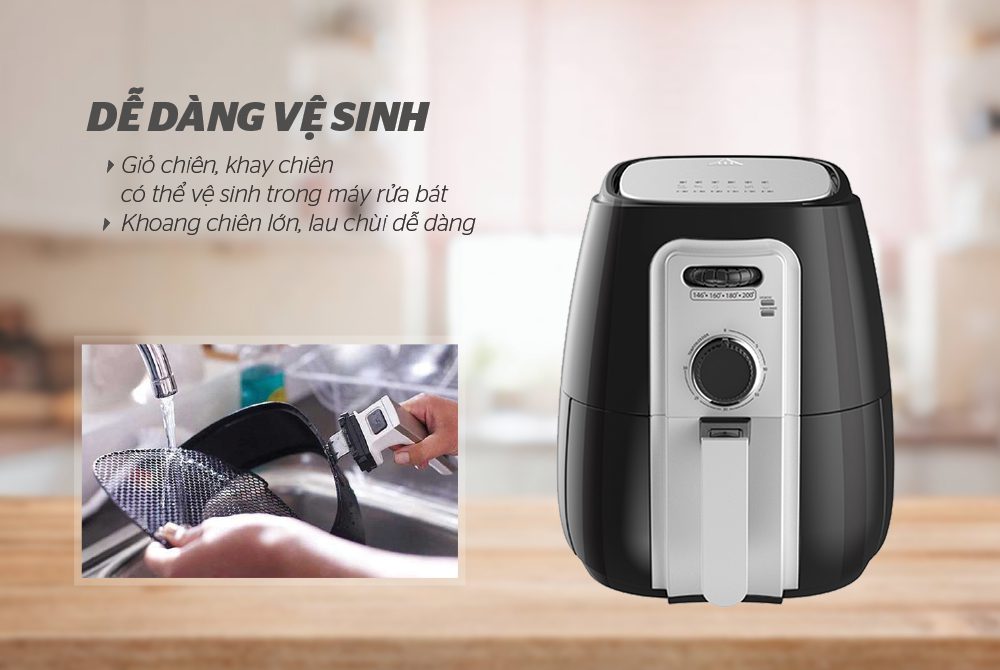 Ngay cả những người ít sử dụng đồ điện tử cũng có thể dễ dàng sử dụng nồi chiên không dầu bởi bảng điều khiển cơ với các núm xoay đơn giản. Trên các núm xoay đã được ghi chú thời gian, nhiệt độ rõ ràng để bạn lựa chọn chế độ chiên phù hợp với thực phẩm.