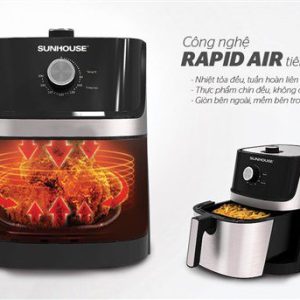 Nồi chiên không dầu là một bước phát triển mới trong công nghệ chế biến thức ăn, đặc biệt với các món chiên rán. Với cách chế biến truyền thống, bạn cần một lượng dầu mỡ nhất định mới có thể làm chín thực phẩm, đi kèm với đó là những lo ngại về sức khỏe và sự an toàn khi chế biến. Với công nghệ Rapid Air ứng dụng trong Nồi chiên không dầu 6L CHÍNH HÃNG SUNHOUSE SHD4056VM, việc chiên rán không những nhanh gọn hơn mà còn tốt hơn cho sức khỏe.