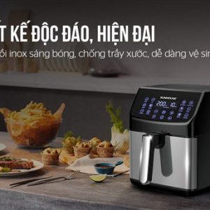 Nồi chiên không dầu 6L CHÍNH HÃNG SUNHOUSE SHD4087 có kiểu dáng hiện đại với tone màu đen, bạc tối giản mà sang trọng, phù hợp với nhiều không gian nội thất khác nhau. Dung tích lớn 6L có thể nướng gà vịt nguyên con, chế biến các món ăn cầu kì.