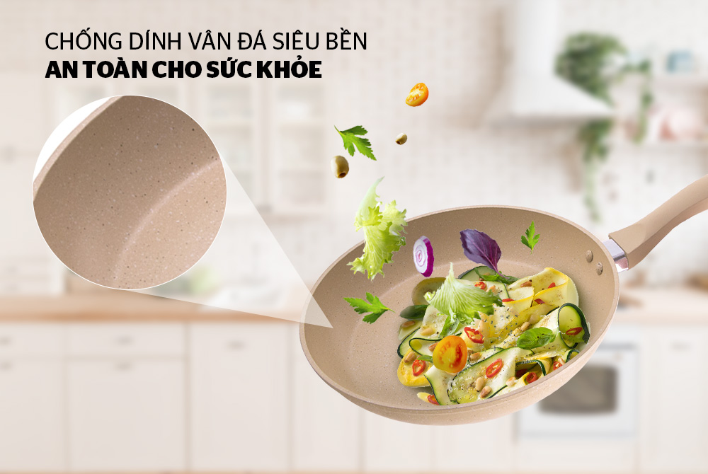 • Bên cạnh đó, lớp phủ chống dính không chứa PTFE hay PFOA thân thiện với môi trường và an toàn cũng là điều khiến chảo chống dính làm từ đá hoa cương được ưa chuộng