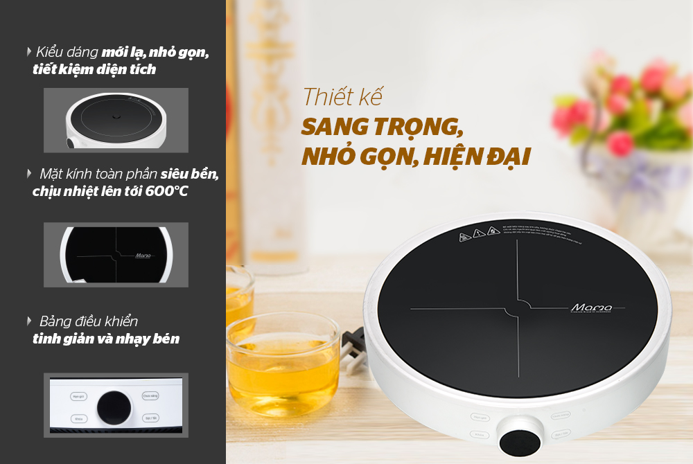Nếu bạn yêu thích một thiết kế bếp từ đơn có thiết kế gọn, đẹp mắt nhờ những hoa văn trang nhã thì đừng bỏ qua bếp điện từ cảm ứng CHÍNH HÃNG SUNHOUSE MAMA SHD6872. Sản phẩm nay có độ dày vừa phải nên vô cùng nhẹ nhàng nên bạn có thể mang đi đến mọi nơi vô cùng tiện dụng. Mặt bếp từ được làm bằng kính cường lực mang lại sự bền bỉ và có thể chịu được nhiệt độ cao, công suất tối đa 2000W giúp bạn nấu nướng cực nhanh chóng.