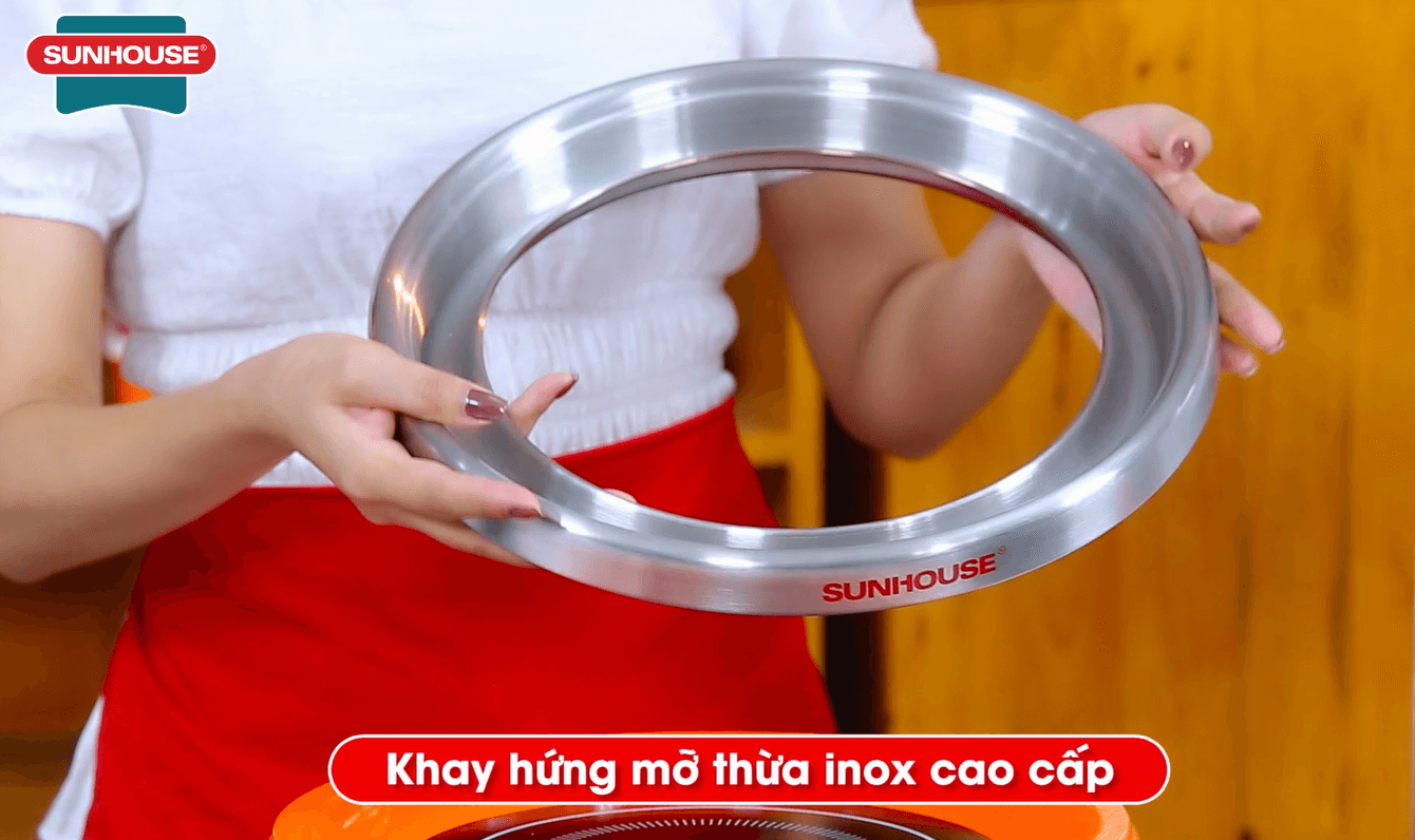 Để tránh mỡ từ thực phẩm trong quá trình nướng chảy ra gây mất vệ sinh thì vỉ nướng được đặt trên một khay hứng mỡ thừa inox cao cấp để mỡ dư thừa chảy xuống, tránh làm đồ ăn bị béo cũng như ảnh hưởng đến sức khỏe. Khay hứng này có thể tháo ra dễ dàng để đổ mỡ thừa cũng như vệ sinh sạch sẽ, vô cùng tiện lợi cho người dùng.